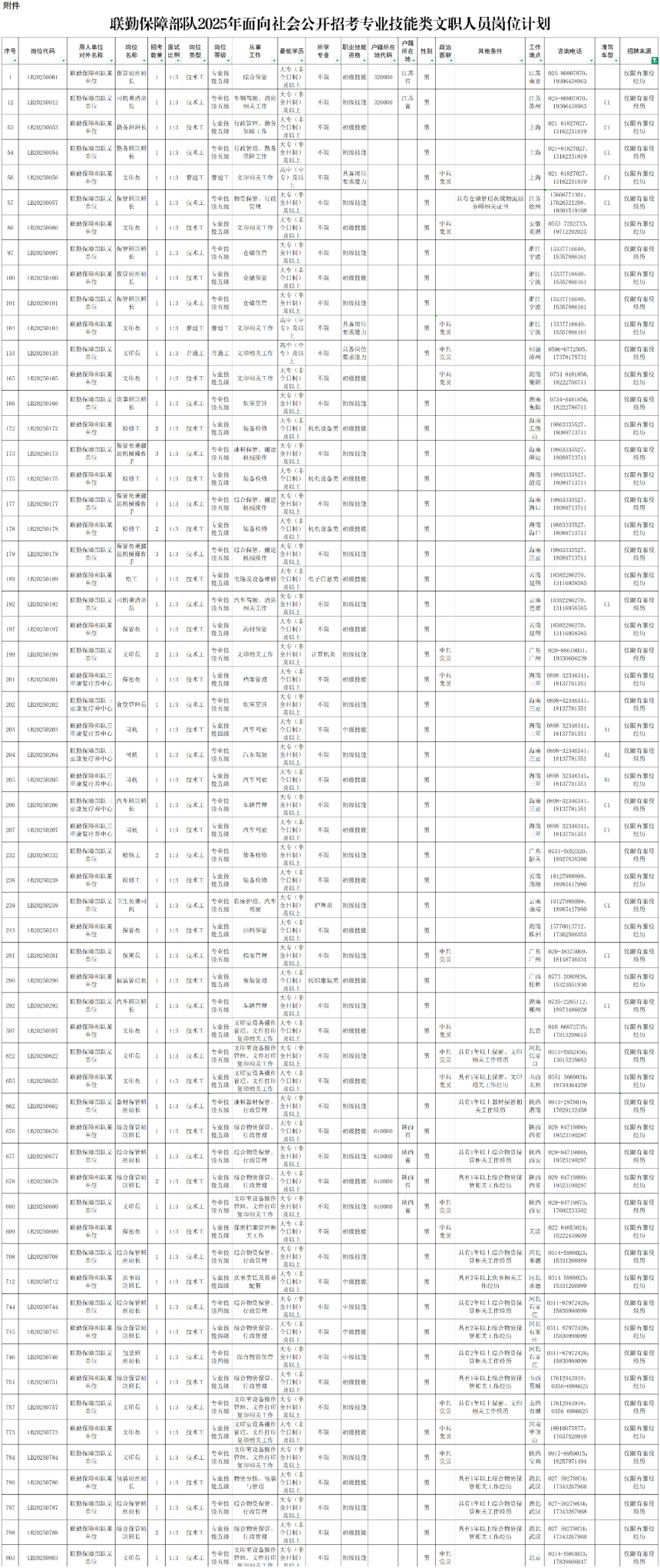 联勤保障部队2025年专业技能类文职人员公开招考工作最终解释权归联勤保障部队政治工作部文职人员处。
