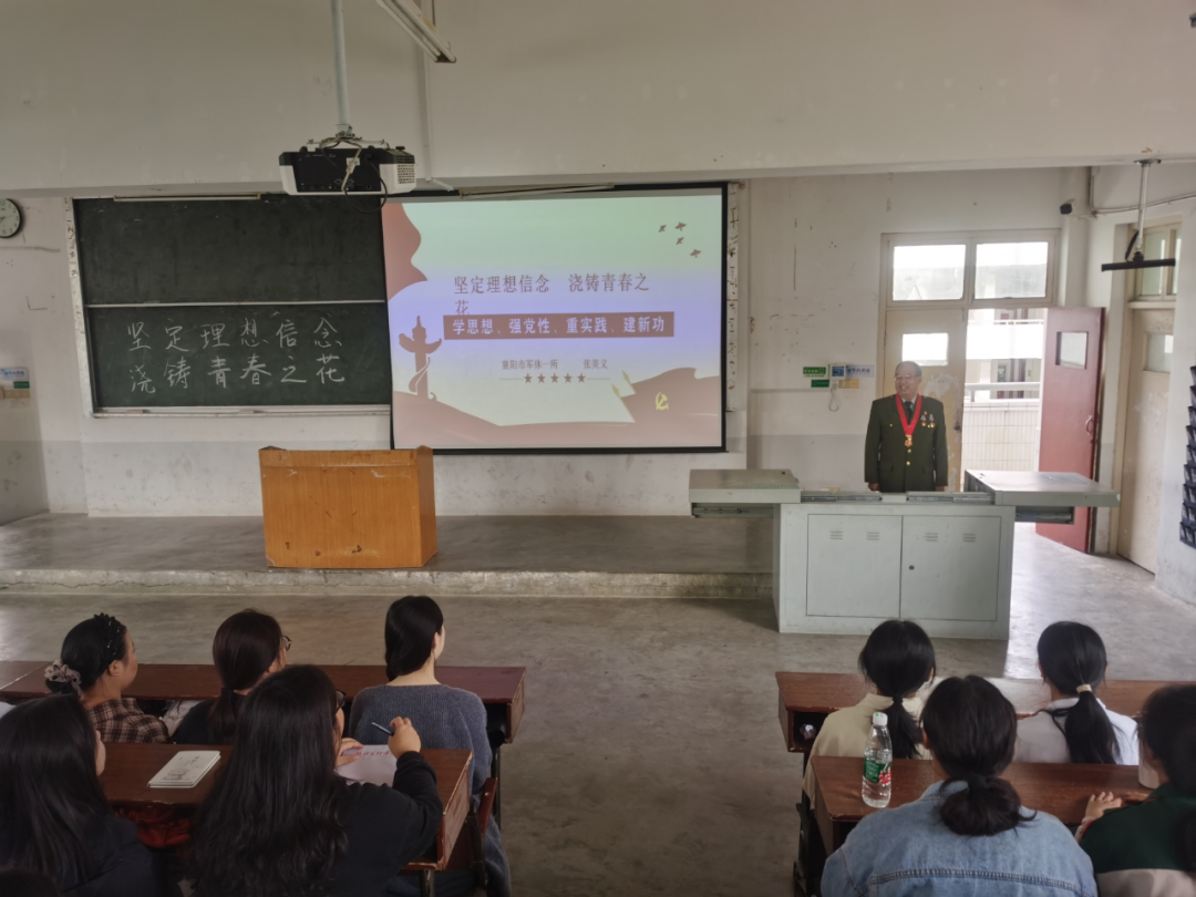 近日,受湖北文理学院外国语学院邀请,市军休一所军休干部张美义走进高校,深入课堂,以“坚定理想信念,浇铸青春之花”为题,为近三百名大一新生上了一堂生动精彩的国防教育课。