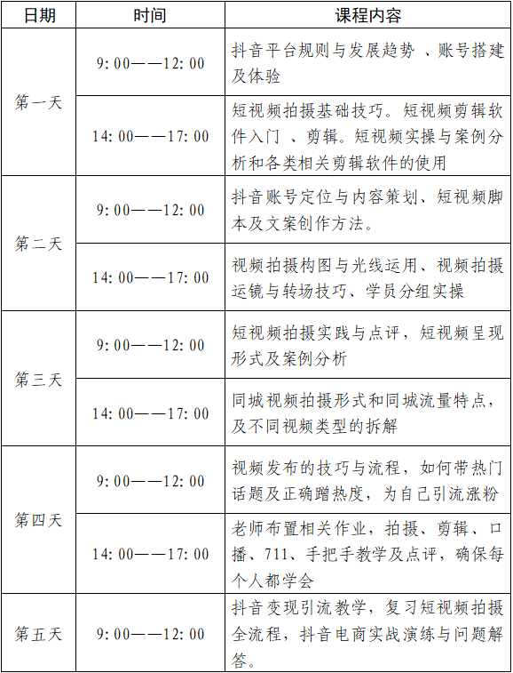 1.使初创企业学员全面了解短视频及电商的发展趋势、市场环境和商业模式,树立正确的短视频运营理念。